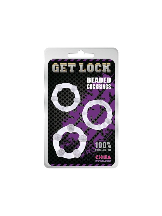 SET 3 ANELLI FALLICI CON RILIEVI STIMOLANTI BEADED COCKRINGS TRASPARENTI